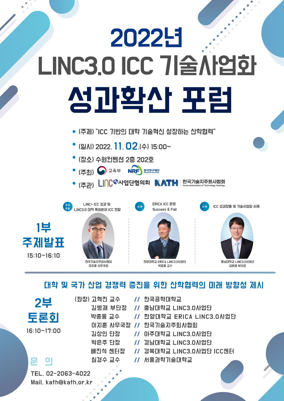 붙임 2. 2022년 LINC 3.0 ICC 기술사업화 성과확산 포럼 웹 포스터
